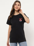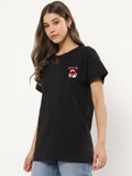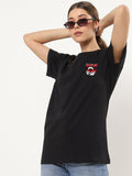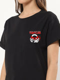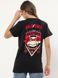 Women's Black Ninja Power Graphic Printed Oversized T-shirt